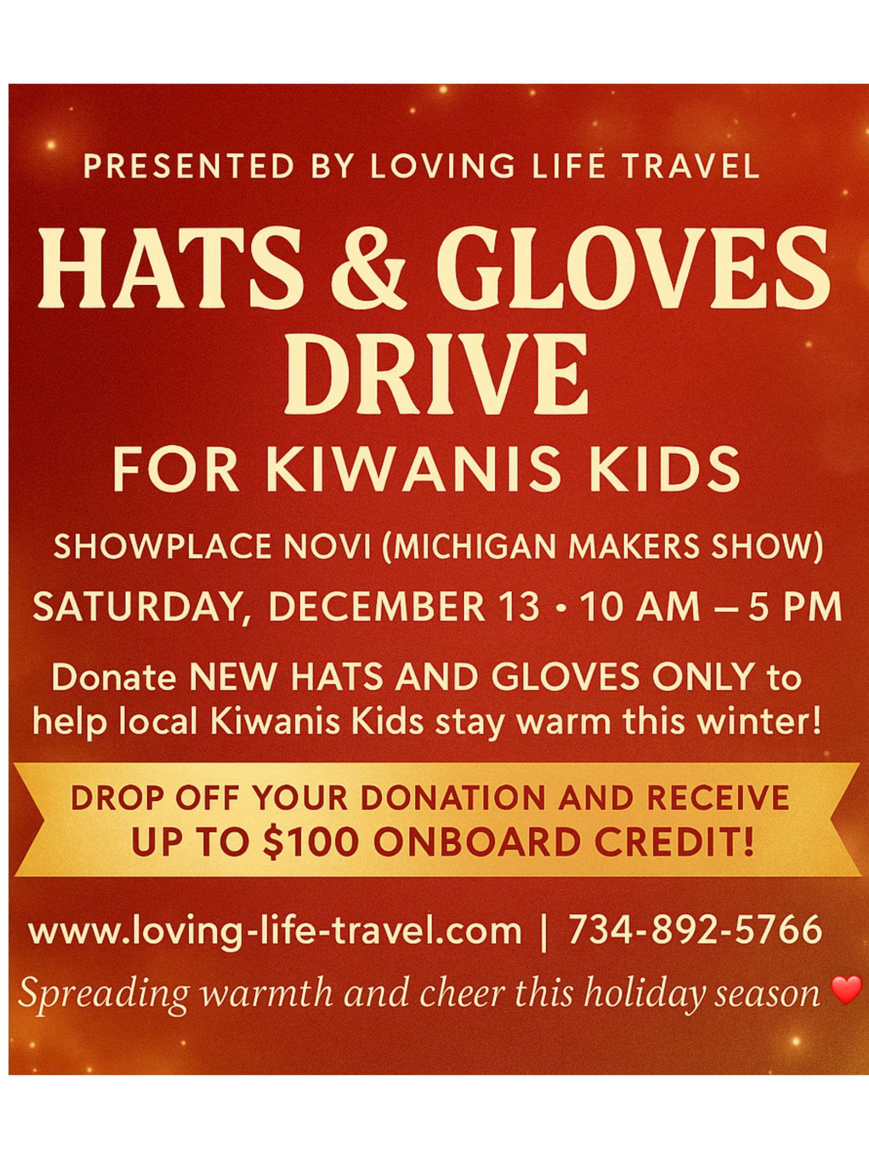 Loving Life Travel will be onsite collecting new hats, gloves, and mittens for the Canton Kiwanis Kids Hats & Gloves Drive—and I would love for you to stop by and see me!