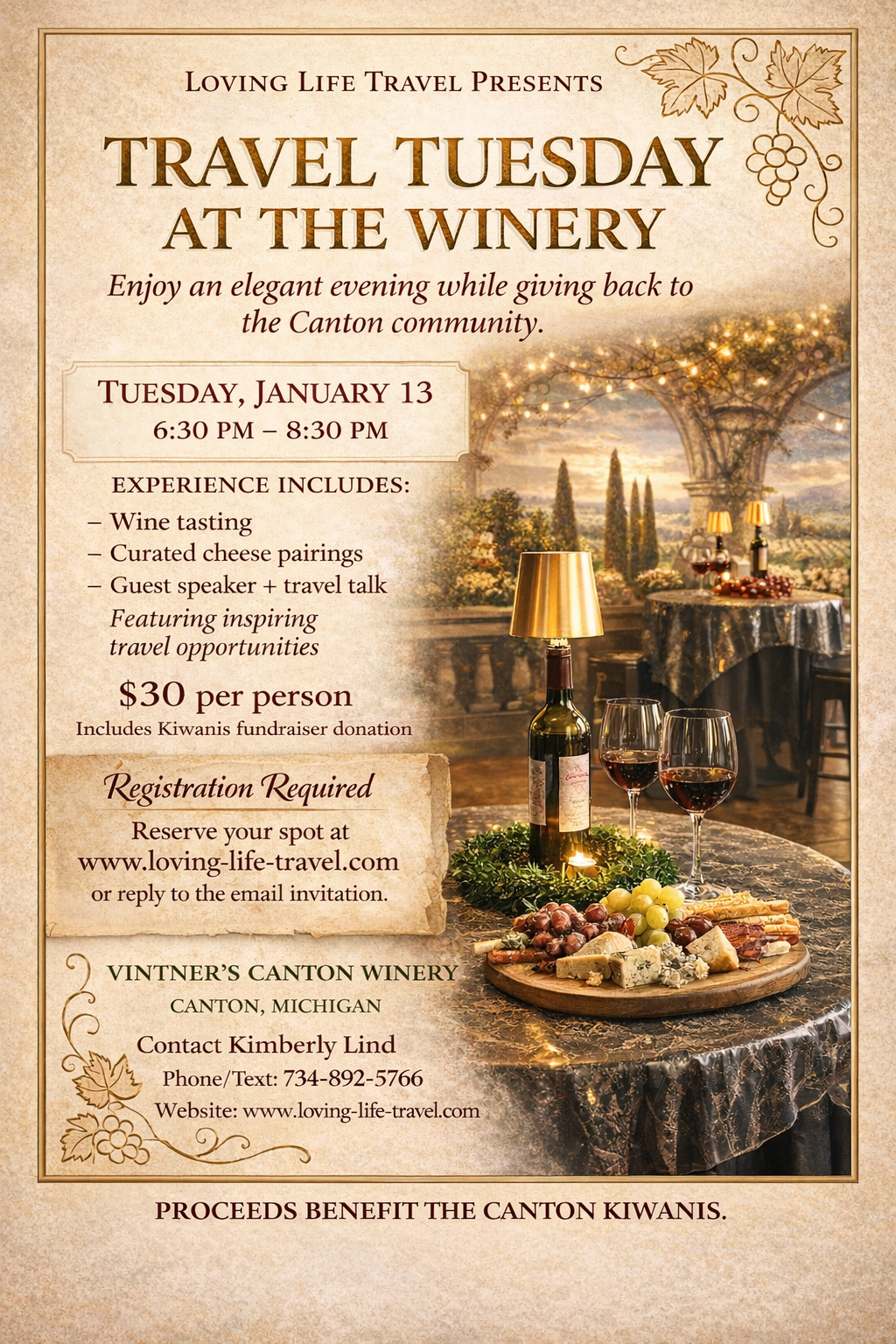 We're hosting Travel Tuesday at Vintner's Canton Winery on January 13th, 6:30-8:30 PM.